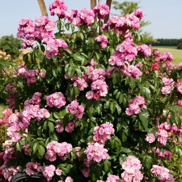 Features: Pink lilac, light aroma. Repeated flowering. The leaves are highly resistant to black spot disease and powdery mildew. The upright walker rose blooms with small flowers in a rich umbel, making it perfect for smaller gardens as it is not that tall.