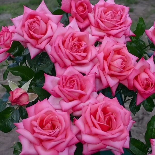 Characteristic: High disease resistance. The flower is a deep pink color with a moderate aroma, and is a classic form of mixed tea rose. Its high center has triangular curved petals. Cold resistant, rain resistant, flowers often appear and last for a long time, blooming almost continuously, with full flowers.